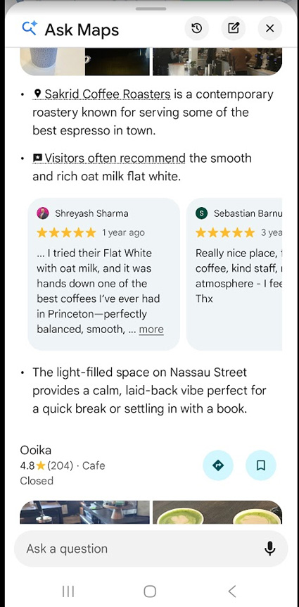 - Make sure users can complete their journey by booking a reservation, placing an order, etc. For business where that is important, you want to make sure “Ask Maps” is getting it right.