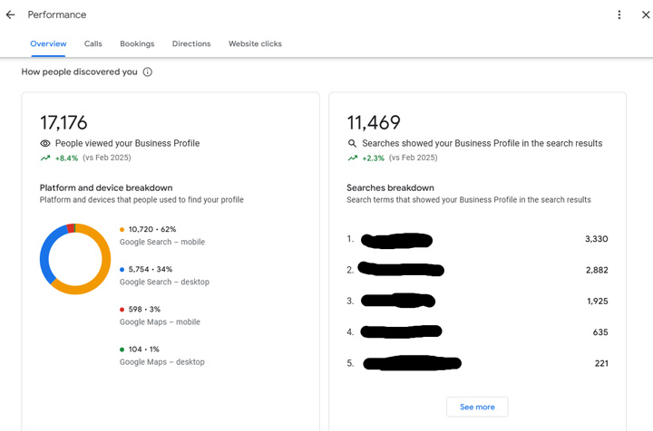 For example, here is Google Business Profile reporting now. It would be awesome if Google added “Ask Maps” as a surface. I’ll try and find out if that’s possible and report back here once I learn more.