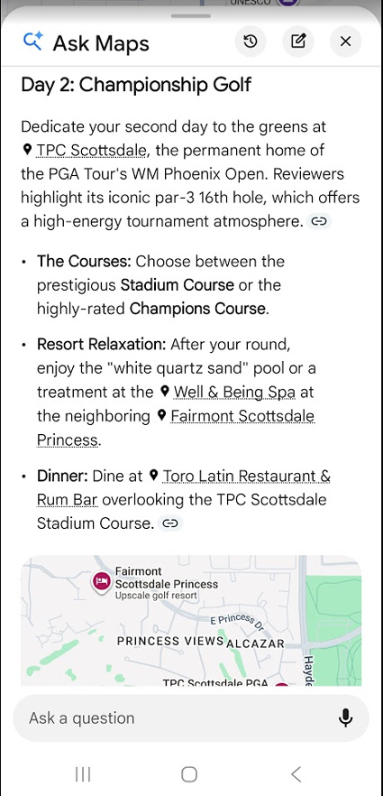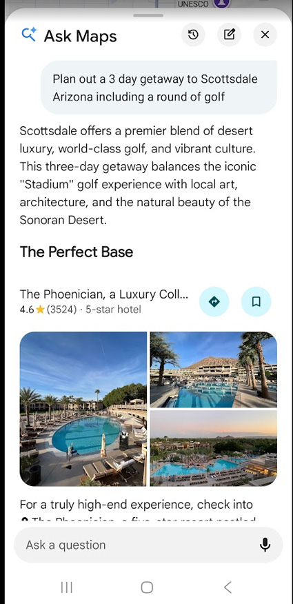 “Ask Maps” is a big change in how users can leverage Gemini in Google Maps and the results are much richer, more helpful, and conversational. It’s like having AI Mode directly in Google Maps where Gemini can help you plan trips, research places to go, surface things you haven’t thought of, and more.
