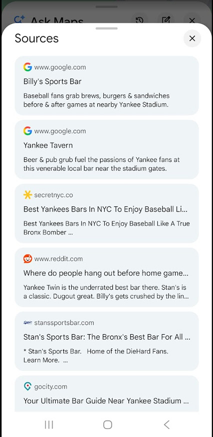 “Ask Maps” also provides AI Overview-like citations so you can visit the websites where the information was sourced: