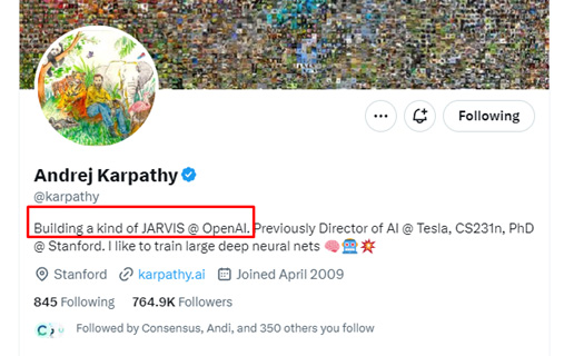 Smart people from Google and OpenAI have explained this many times in interviews, podcasts, videos, and more. And Andrej Karpathy, one of the cofounders OpenAI, even had “building a kind of Jarvis” in his X bio!